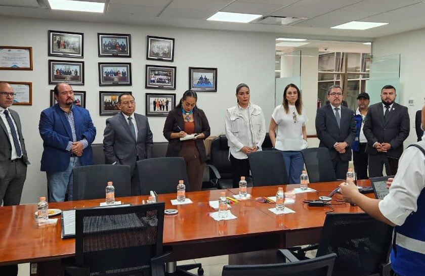 Particular atención puso el magistrado Guerra Álvarez, así como los integrantes del Tribunal de Disciplina Judicial y del Órgano de Administración Judicial, a la evacuación de las y los niños de los distintos Centros de Desarrollo Infantil con los que se cuenta, los cuales, desde el monitoreo a través de pantallas, se pudo observar siendo resguardados debajo de mantas y con atención incluso de apoyo psicoemocional.