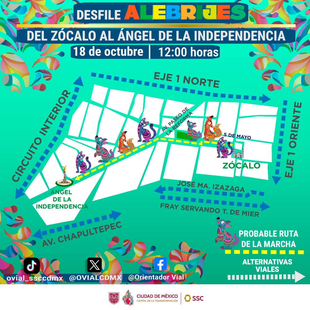 Este sábado 18 de octubre, la zona centro de la Ciudad de México se llenará de música, color y un poco de terror, con motivo del Día de muertos y Halloween, donde efectivos de la Secretaría de Seguridad Ciudadana (SSC) implementarán dispositivos de seguridad y vialidad, para el “Desfile de Alebrijes Monumentales, y la ”Marcha Zombie”. Con el objetivo de…